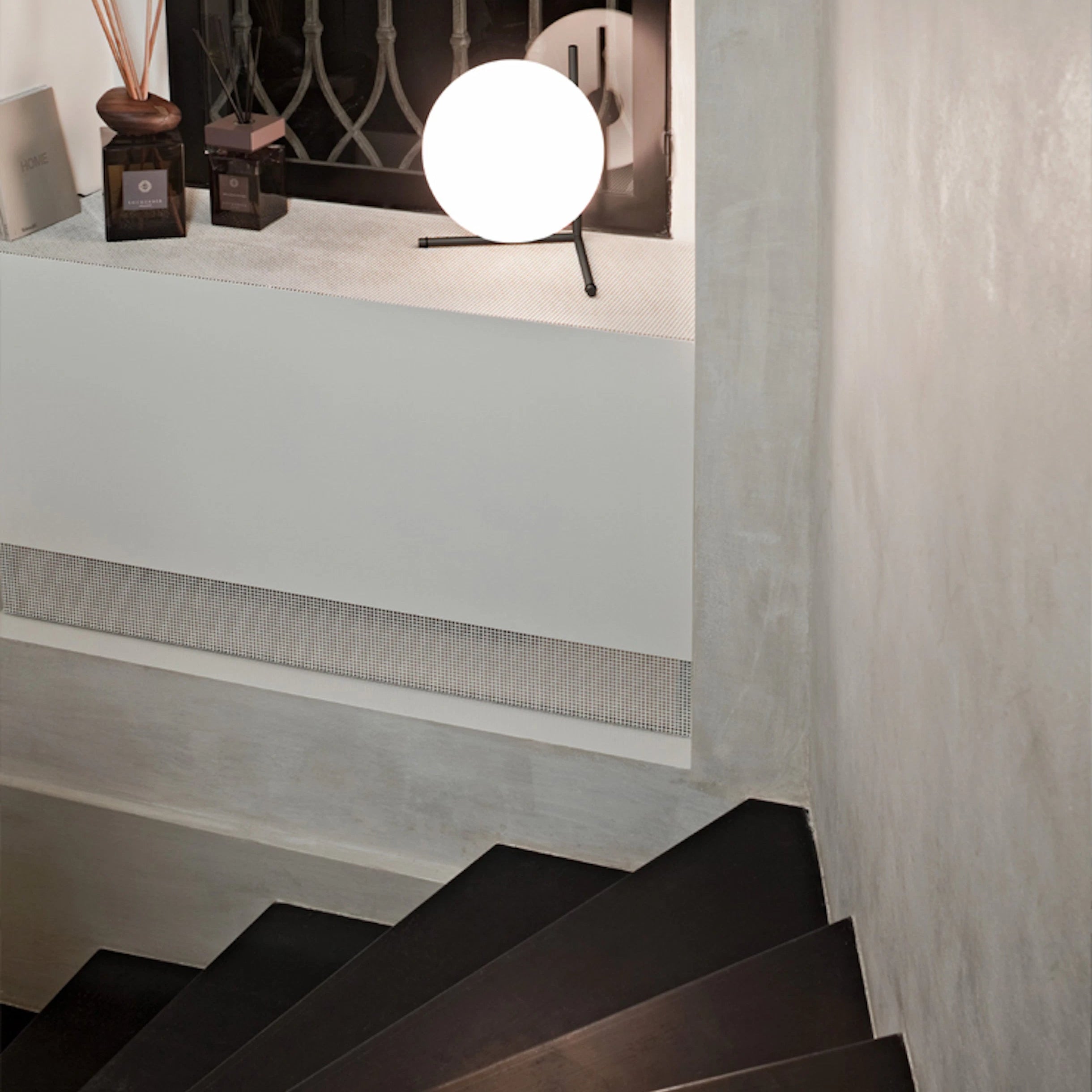 Table lamp IC Lights 3 is a testament to a minimalist approach to form and light. The distinctive design is based on a delicate balance — an opal glass globe appears to be suspended on a slender, curved arm made of brass or finished in 24-karat gold. The subtle construction draws the eye without dominating the space, making IC Lights 3 suitable as both ambient lighting and a sophisticated decorative element.