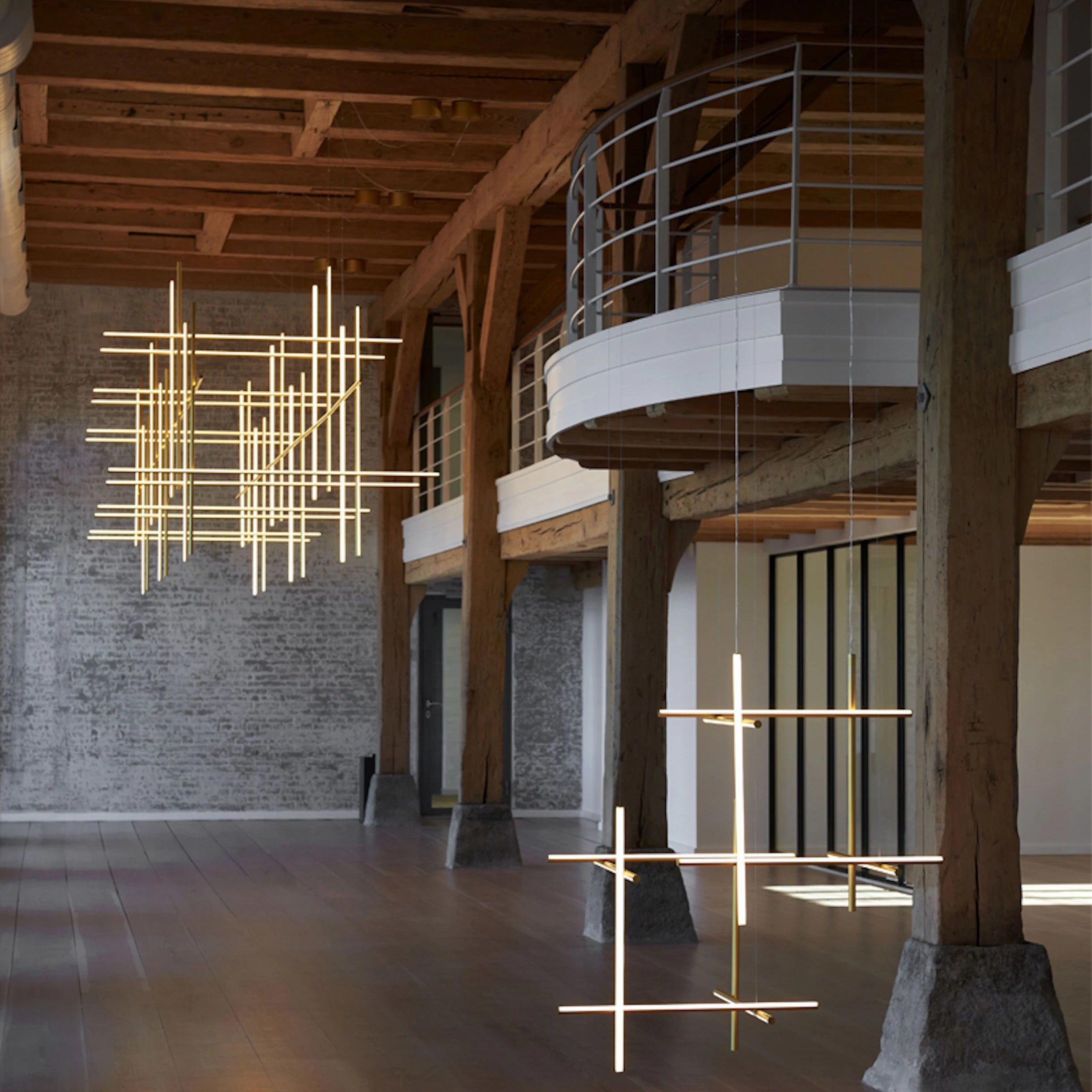 Hanging Lamp Coordinates CL III is designed for installation with external power supply, allowing the power supply to be concealed elsewhere for maximum purity of form. The profiles are mounted using sleek cables, and special mechanical-electrical connections enable quick assembly and precise suspension of the entire structure. This ensures that Coordinates maintains its light, floating character even in the most advanced arrangements.