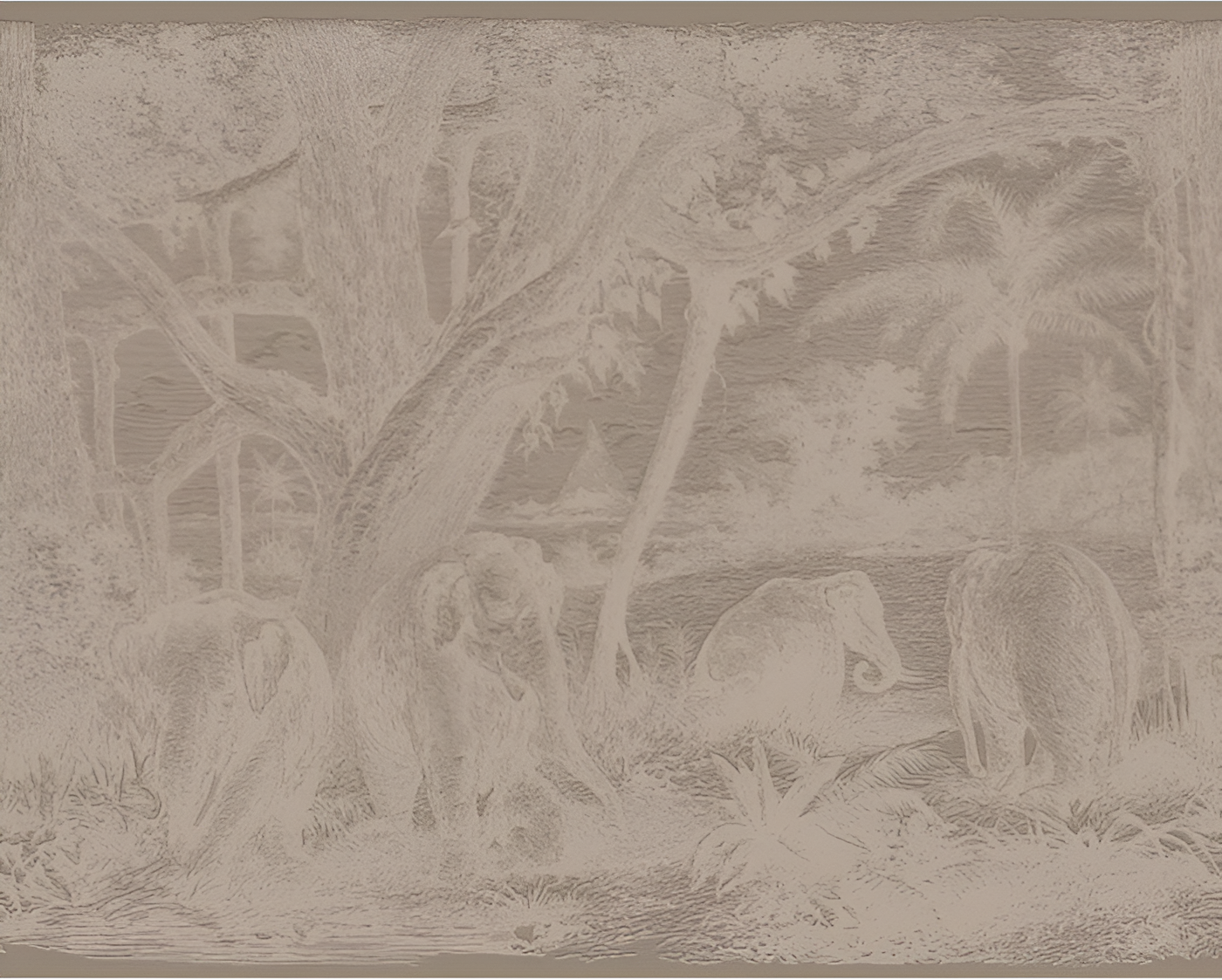 Art Deco Mural ELEPHANTINE Beige with Gold