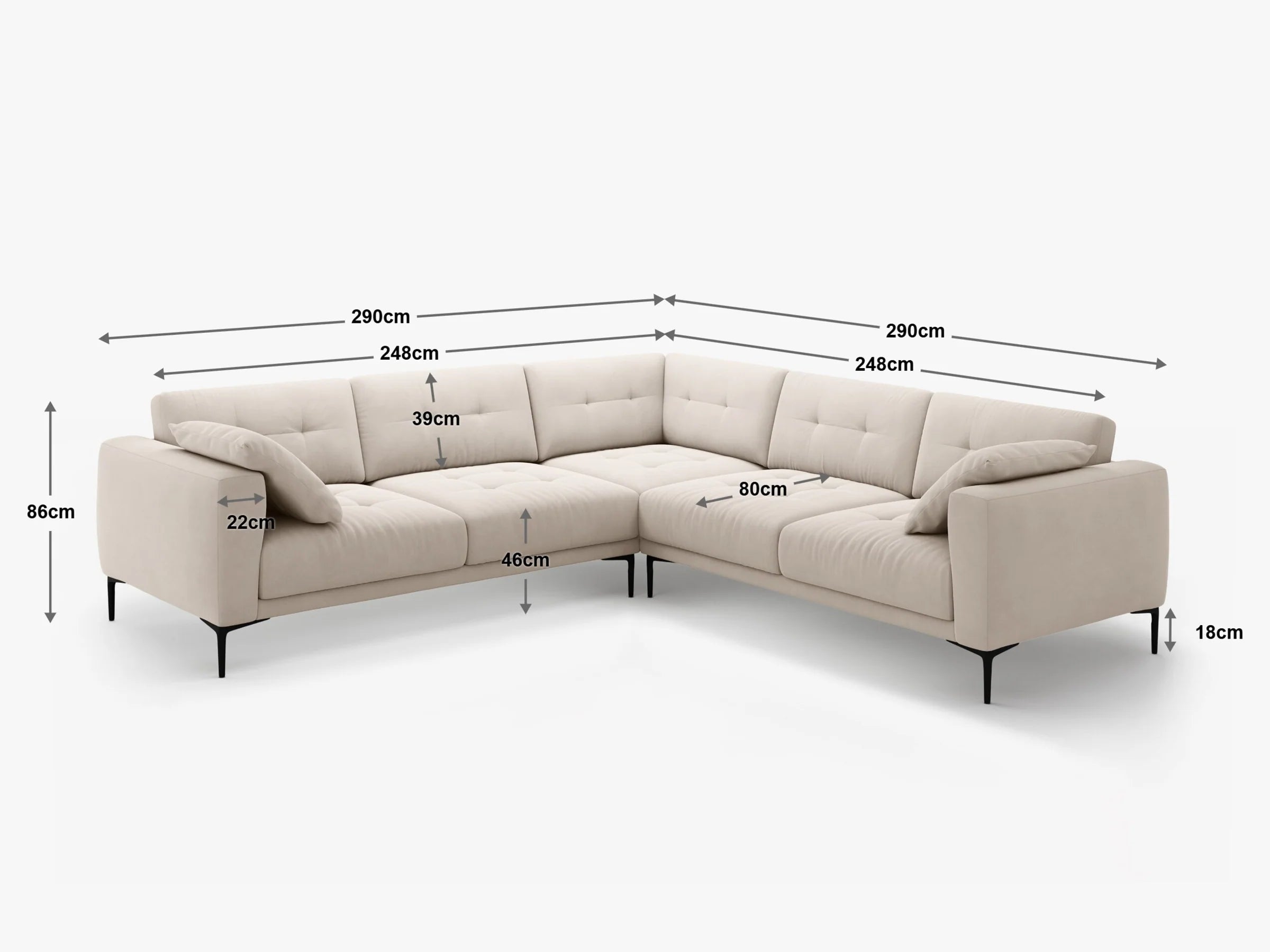 Symmetrical corner sofa Bemy combines a harmonious form with deep comfort, creating an elegant and functional piece for a modern living room. Its spacious seating area provides comfort for everyday relaxation, gatherings with loved ones, or movie nights.