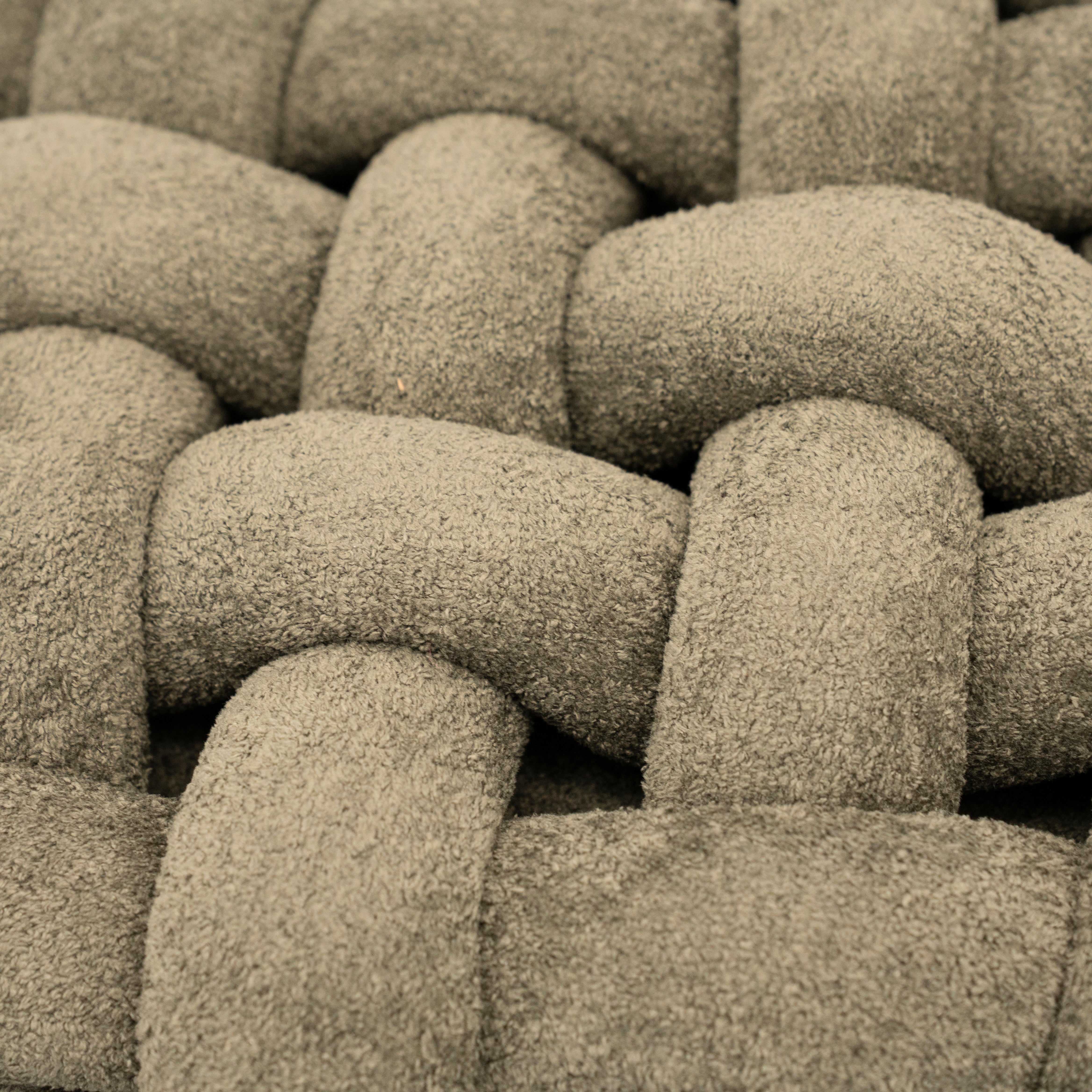 Oryginalny puf Poofie to połączenie nowoczesnego designu z miękkością i komfortem. Jego charakterystyczna, pleciona forma nadaje wnętrzu wyjątkowego stylu i sprawia, że mebel staje się efektowną ozdobą każdego pomieszczenia. Wykonany z miękkiej tkaniny o miłej w dotyku strukturze, zapewnia wygodę użytkowania i przytulny charakter przestrzeni.