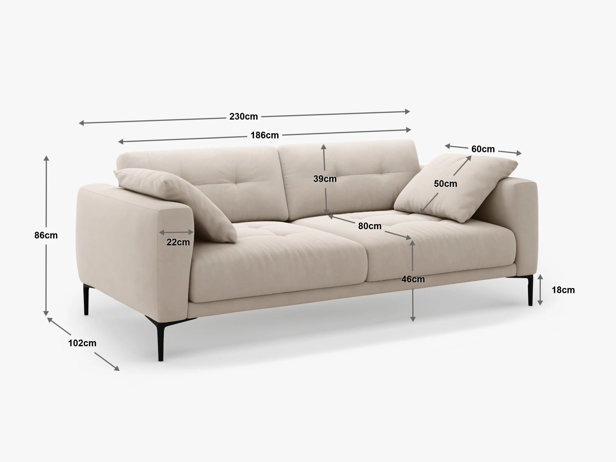 4-person sofa Bemy harmoniously combines elegance with comfort, bringing natural charm and modern lightness into the interior. Its slim silhouette on high metal legs makes it look subtle while offering an exceptionally spacious place to relax.