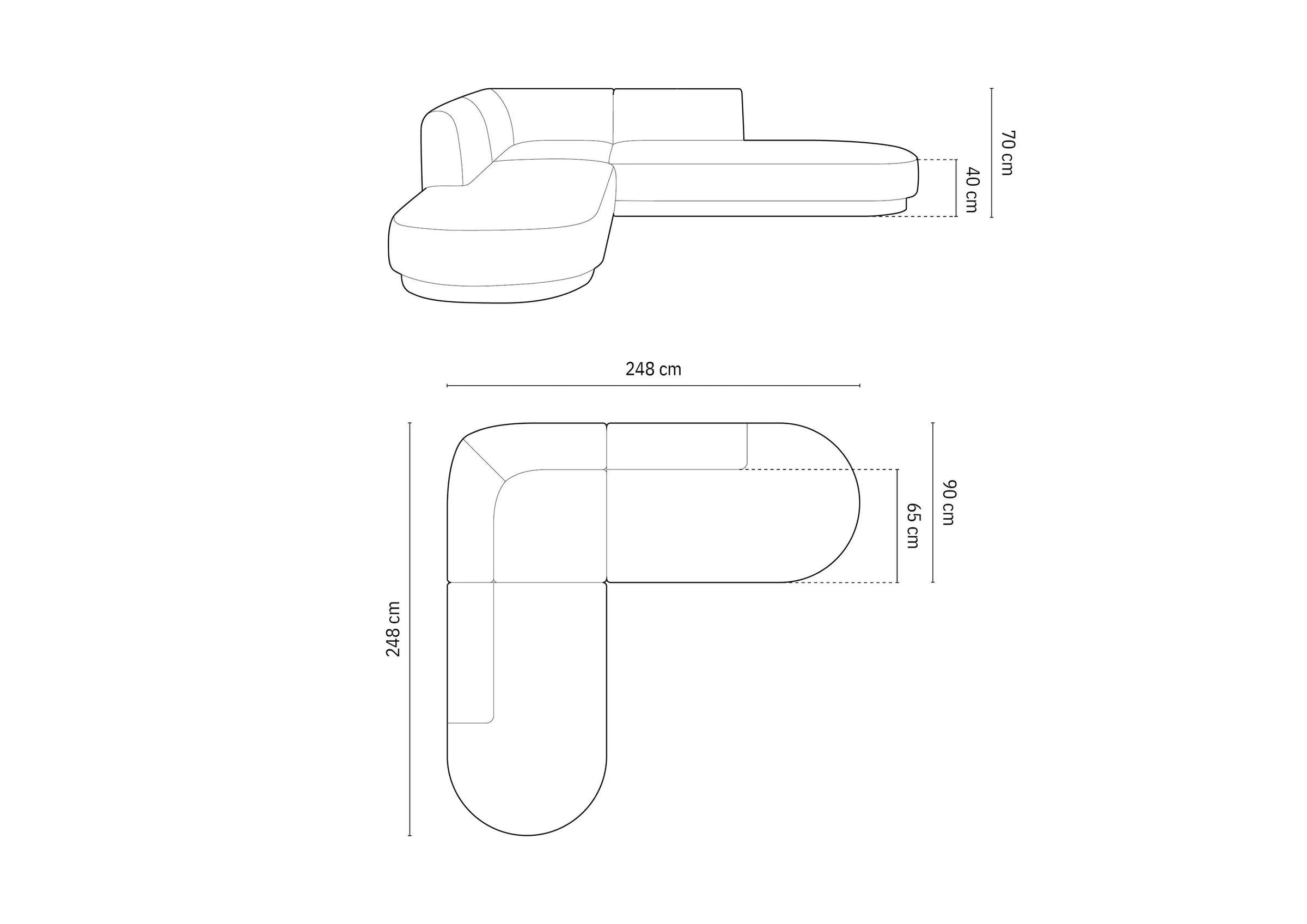 Corner symmetrical Miley is distinguished by round shapes that perfectly match the latest interior design trends. Unusual convenience goes hand in hand with an elegant, minimalist form. Subtle support gently goes into profiled armrests, which adds cohesion to the whole project. What's more, it also provides adequate support while sitting or lying down.