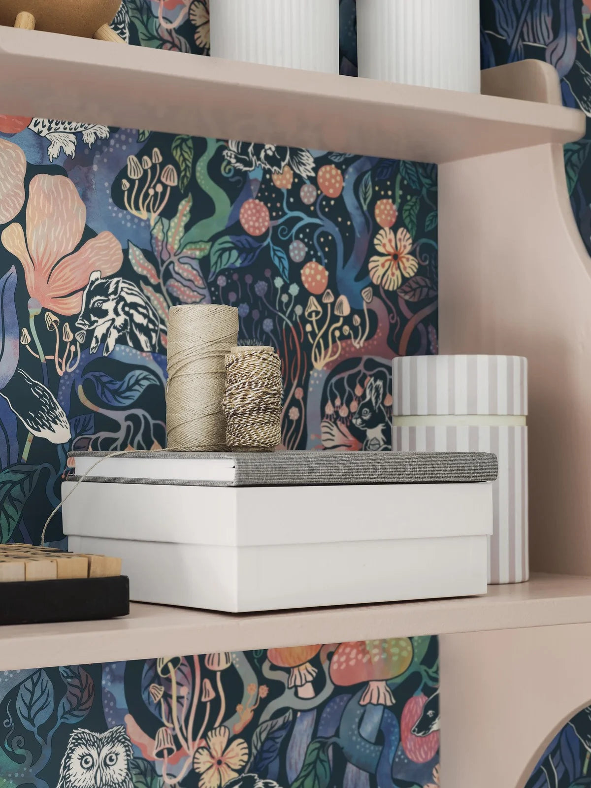 Children's wallpaper with a fairy tale forest theme MAGIC WOODS blue with pink