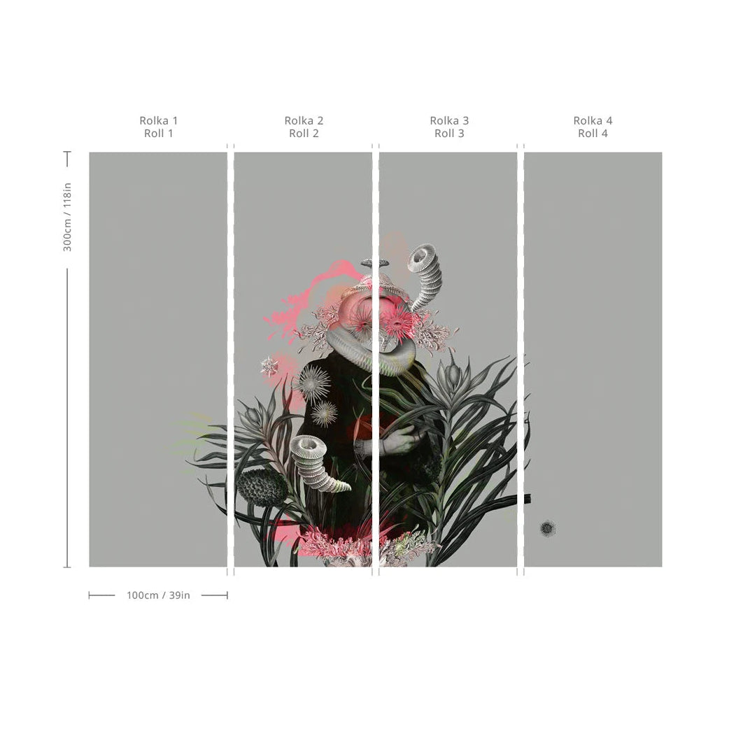 Circular Mural DOTS - ANCIENT RIVERSIDE GROVE black and white