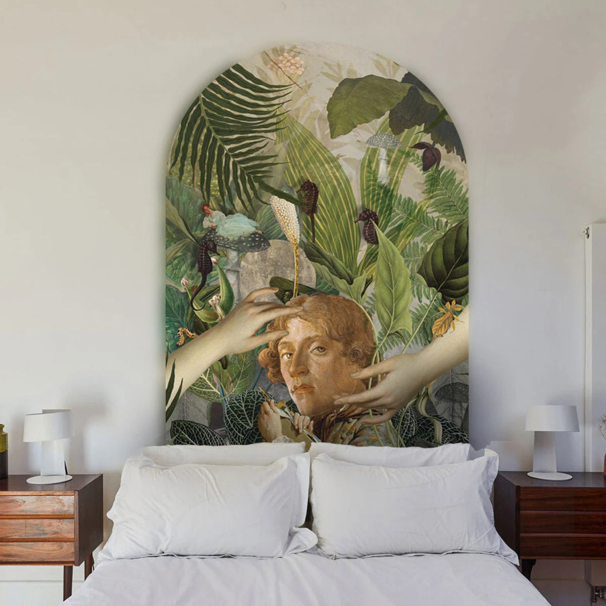Circular Mural DOTS - NATURE GIRL WITH THE PEARL beige with green