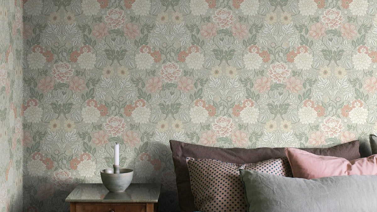 Children's wallpaper with a fairytale forest theme CHARLIE cream with green
