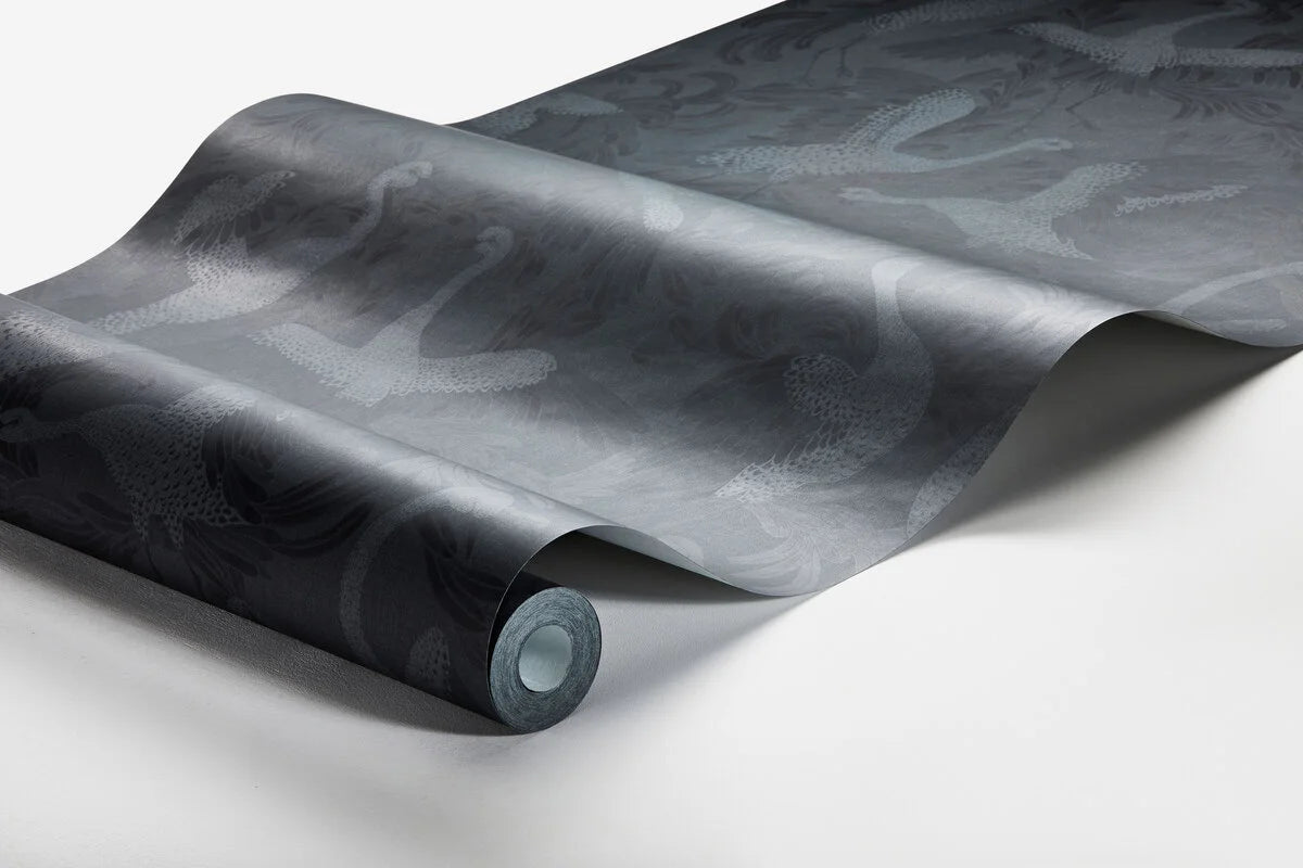 DANCING CRANE Blue Animal Motif Bird Wallpaper