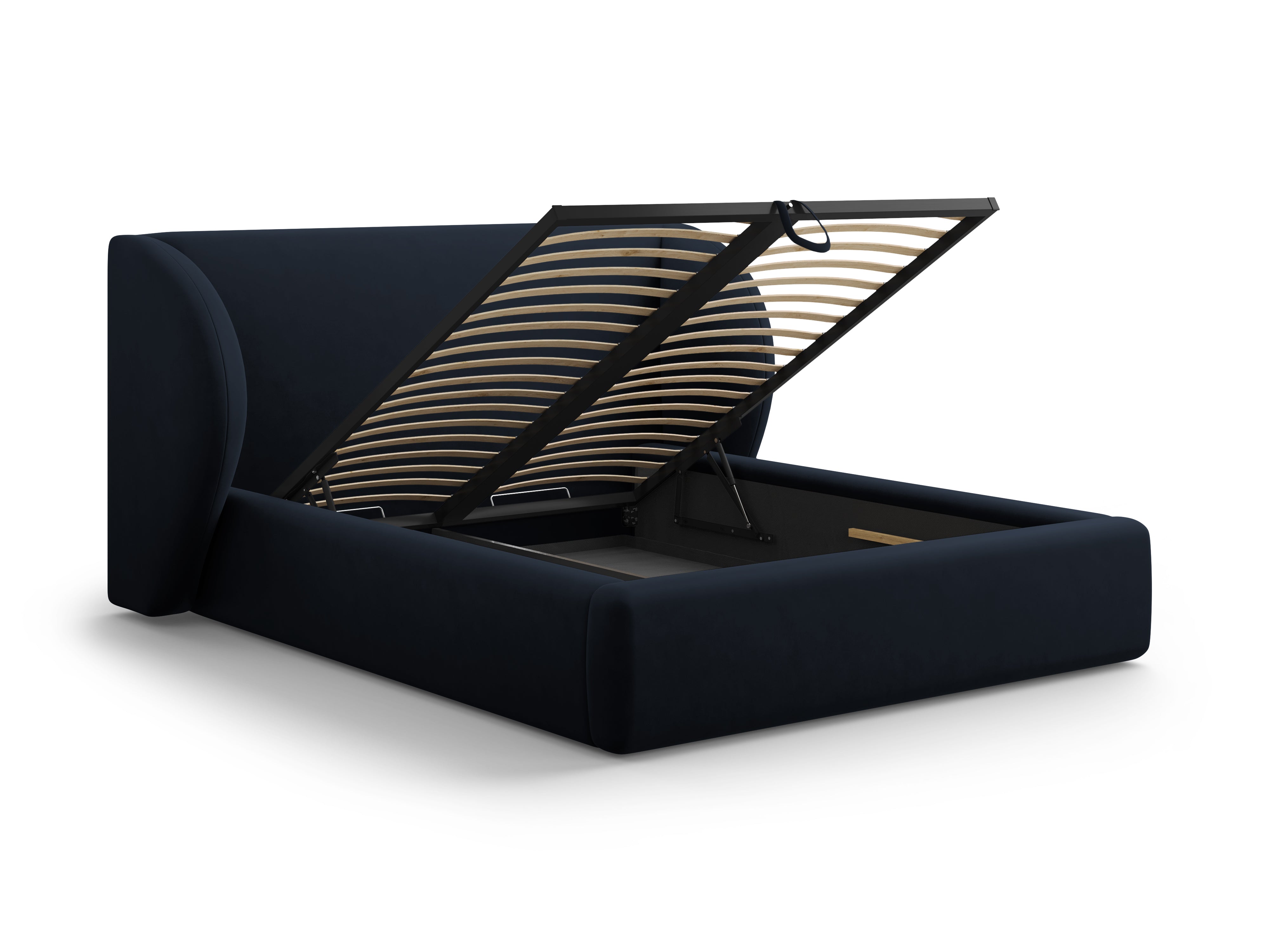 Bed Miley is not only striking but also practical – equipped with a spacious storage compartment for bedding that opens from the front using gas lifts. It is the perfect choice for those who value a combination of aesthetics, functionality, and comfort in the bedroom.