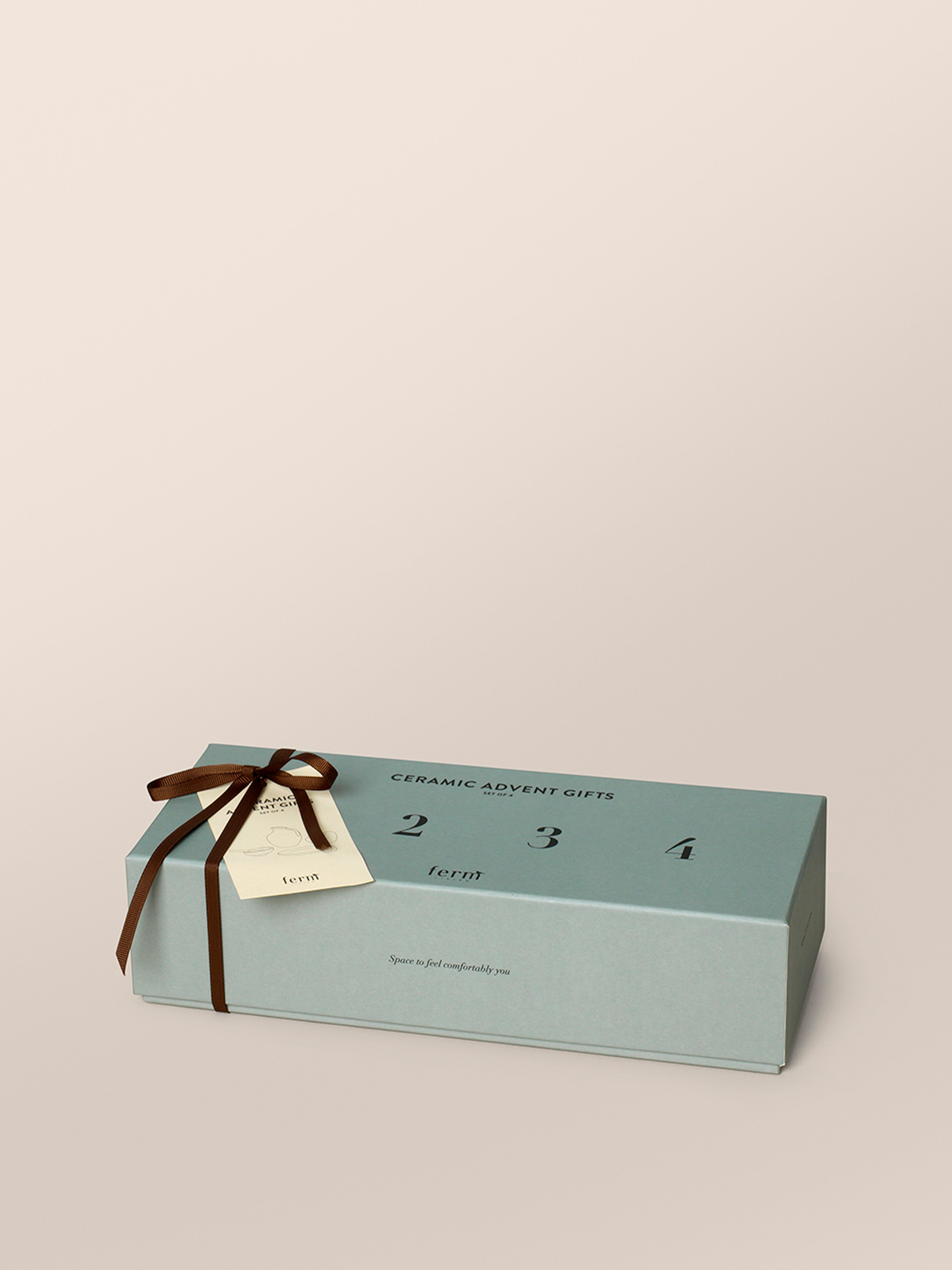 Zestaw akcesoriów adwentowych Advent Gift to wyjątkowy sposób na celebrowanie jednej z najpiękniejszych skandynawskich tradycji – czterech niedziel Adwentu. W eleganckim pudełku ozdobnym znajdują się cztery indywidualnie zapakowane, ponumerowane ceramiczne upominki, które należy otwierać kolejno w każdą adwentową niedzielę. Każdy z elementów – miniaturowa taca z uchwytem, organicznie uformowany świecznik, mała miseczka z dopasowaną łyżeczką oraz mini wazonik – został wykonany z glazurowanej kamionki i ozdobiony unikalną powłoką, co czyni każdy przedmiot wyjątkowym.
