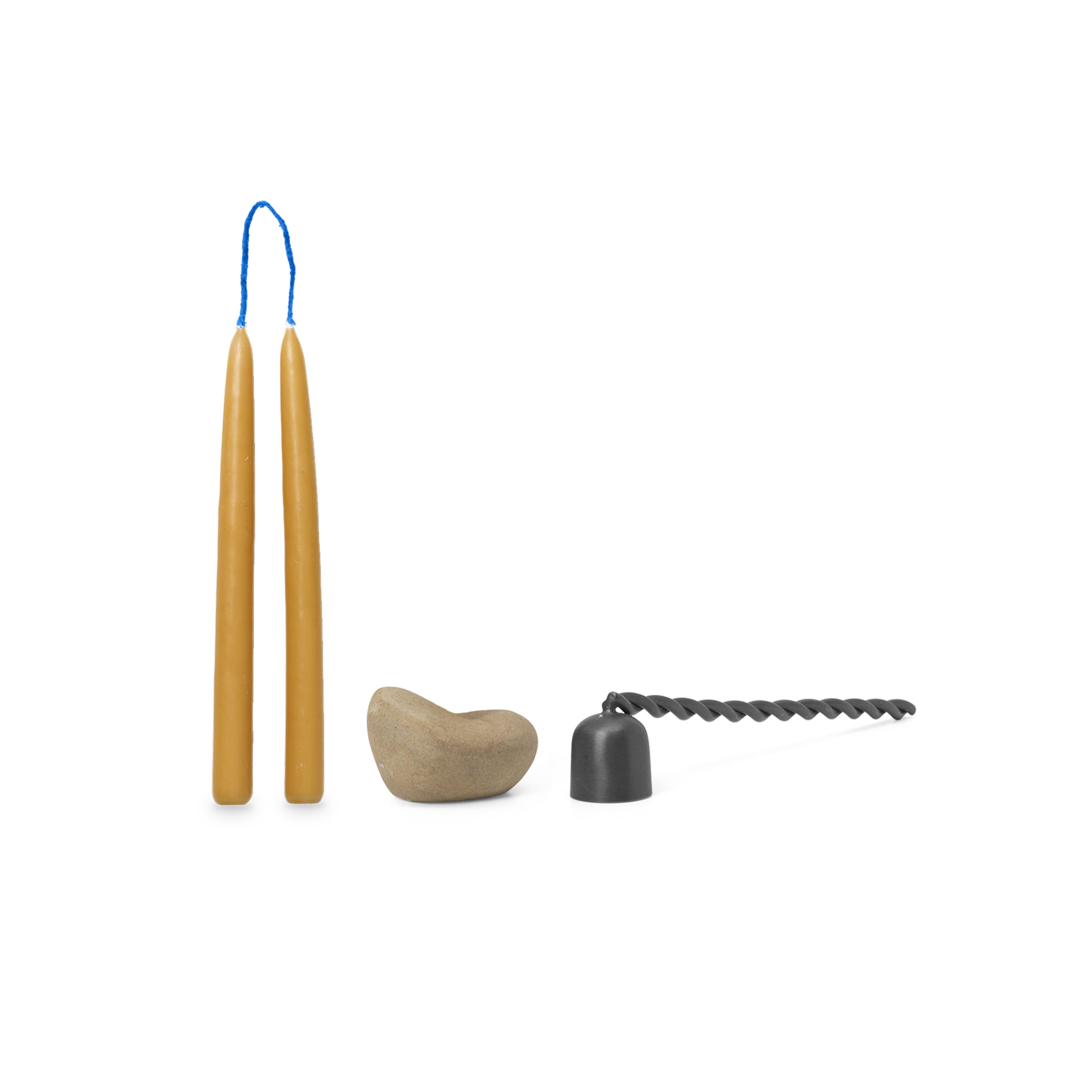 Zestaw do świec Libre to elegancki sposób na zatrzymanie się w codziennym pośpiechu i stworzenie chwili spokoju oraz refleksji. Zachęca do celebrowania drobnych momentów wytchnienia. W zestawie znajduje się mały, organicznie uformowany świecznik z ceramiki, cztery zanurzone świece parafinowe z charakterystycznym niebieskim knotem oraz stylowe gasidło wykonane z czarnego mosiądzu. Całość zapakowana jest w eleganckie pudełko prezentowe, dzięki czemu zestaw doskonale nadaje się na upominek dla bliskiej osoby.
