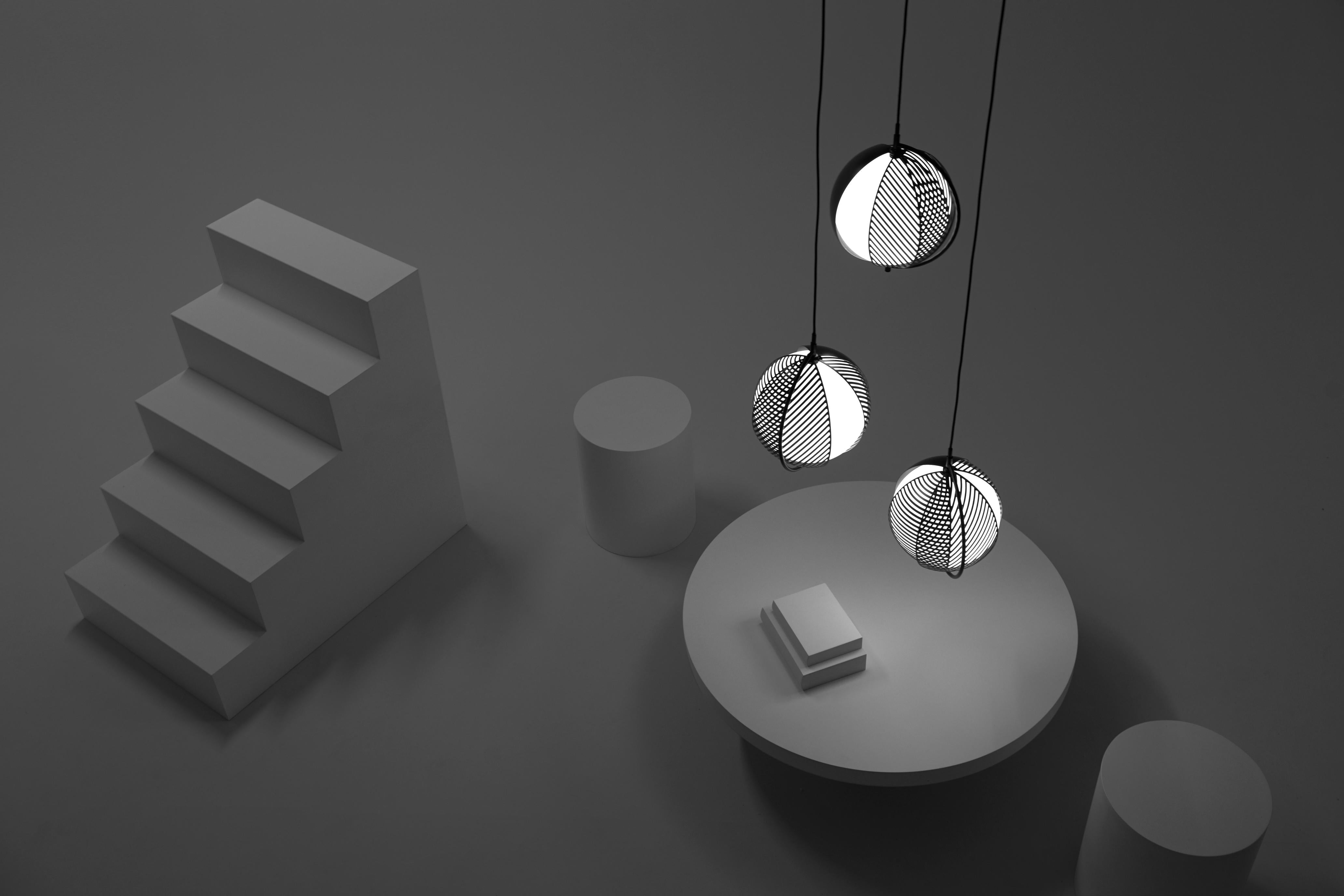 Chandelier Mondo Triplette is a modern interpretation of the classic lighting form. Comprising three connected shades, this designer chandelier combines artistic character with functionality. The movable metal elements with a geometric pattern allow for control over the light effect, enabling the user to shape the atmosphere of the interior freely. Designed by Antonio Facco, it merges elegance, precision, and creative freedom – the chandelier Mondo Triplette becomes the focal point of any arrangement.